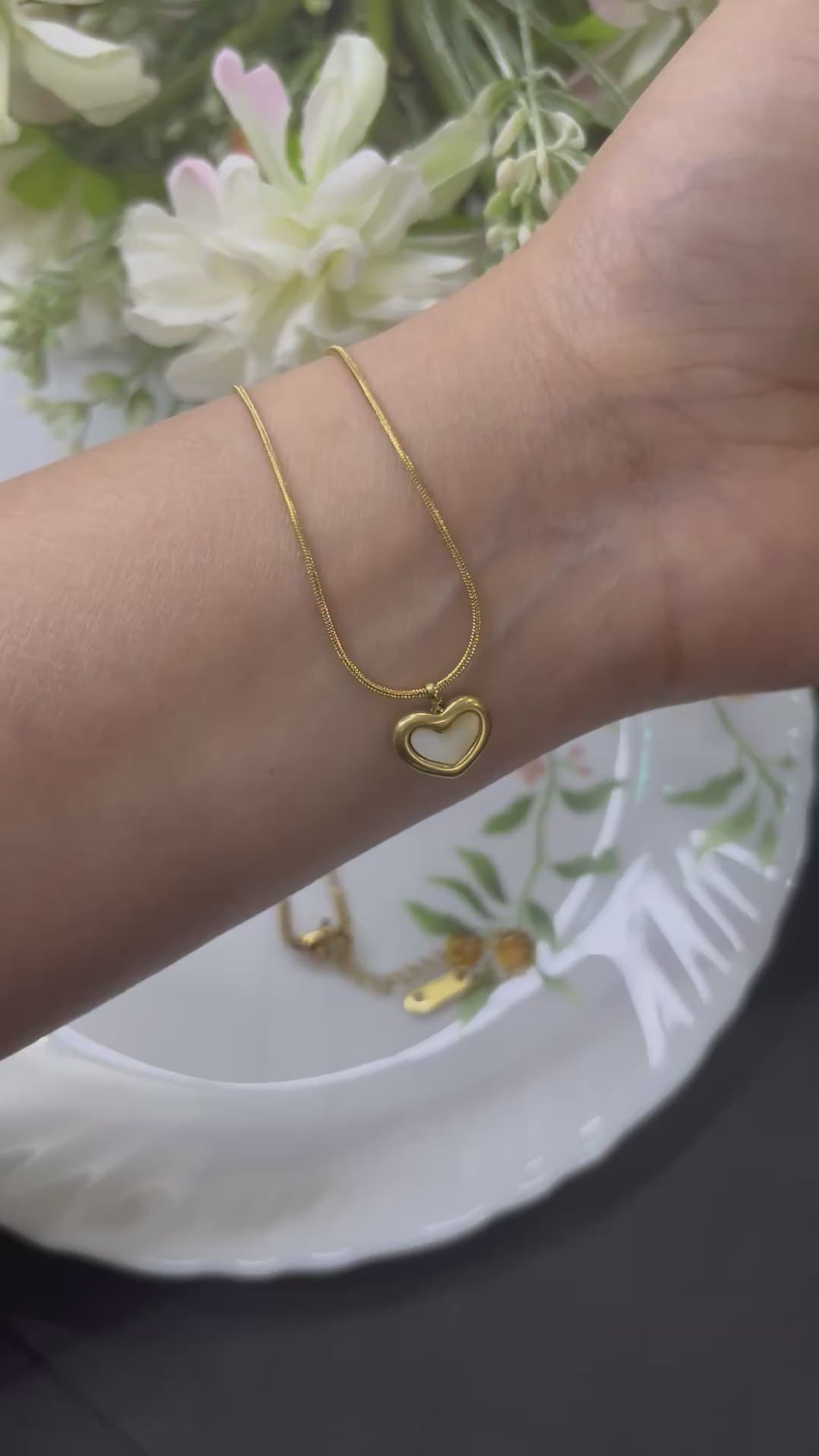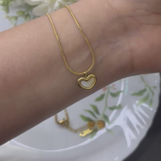 18K Gold Heart White Pearl Enamel Pendant, Dainty Gold Love Necklace, White Mother of Pearl Heart, Waterproof Non Tarnish High Quality