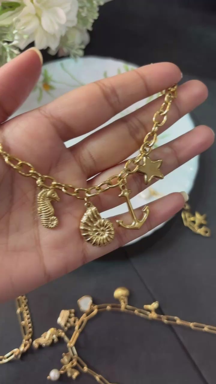 18K Gold Plated Charm Bracelet – A Touch of Personalized Luxury Add meaning to your style with this elegant 18K gold plated charm bracelet, crafted with delicate symbols that reflect beauty, luck, and individuality. Whether worn solo or stacked, it’s the perfect blend of dainty and bold — designed for everyday elegance.