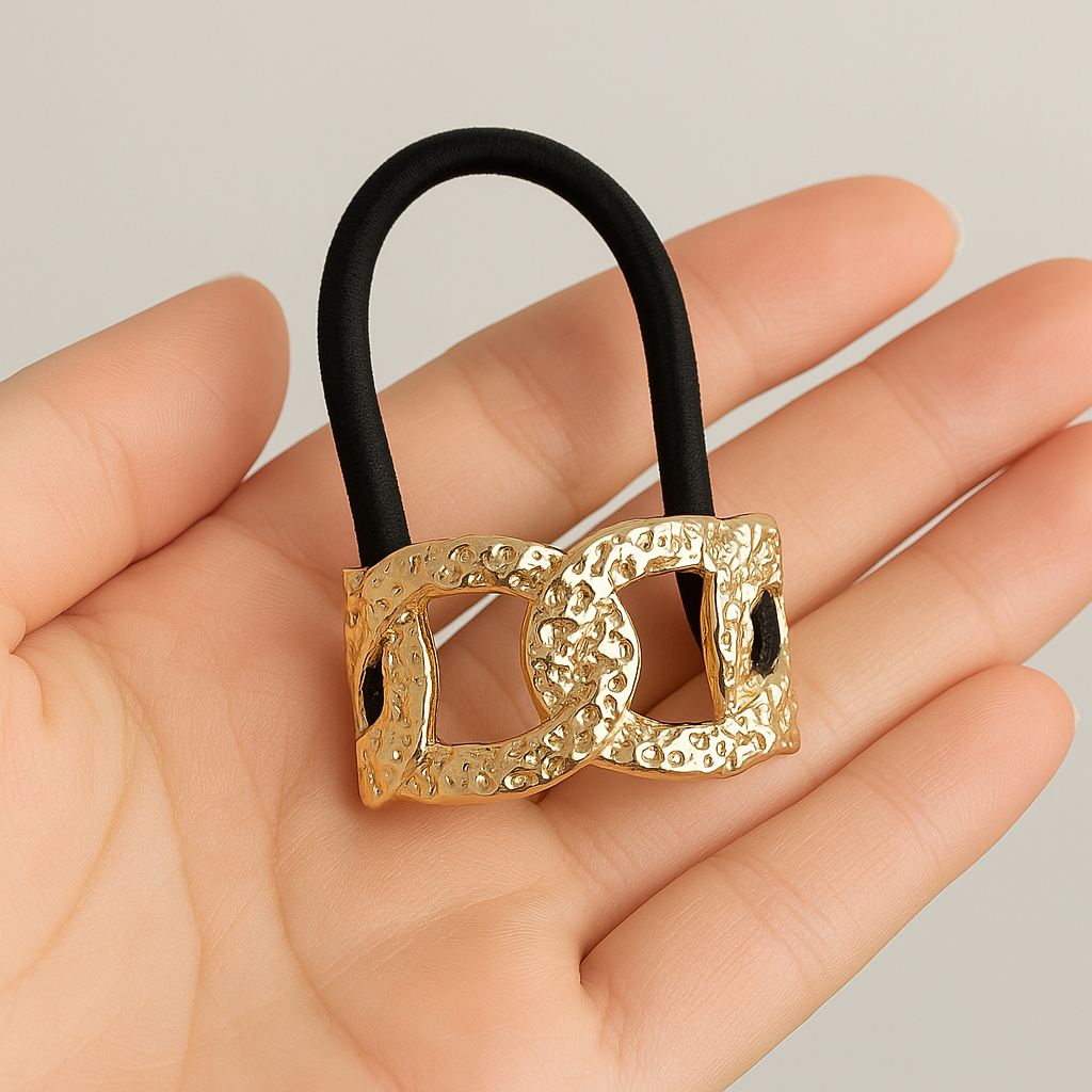 Make your hairstyle stand out with this layered metal hair tie, featuring a double-curve design for a stylish edge. The reflective golden sheen pairs beautifully with any hair color and outfit. Ideal for both casual and formal settings, this piece blends function with fashion for the perfect finishing touch.