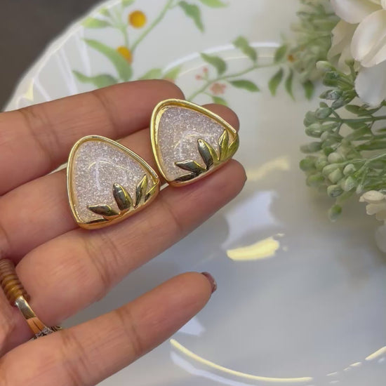 Elevate your accessory game with these stunning gold and white triangular-shaped earrings. Their unique design combines elegance and modernity, making them the perfect statement piece for any outfit. Crafted with high-quality materials, these earrings not only catch the light beautifully but also offer a comfortable fit for all-day wear. Don't miss the chance to add a touch of sophistication to your jewelry collection with these eye-catching earrings.
